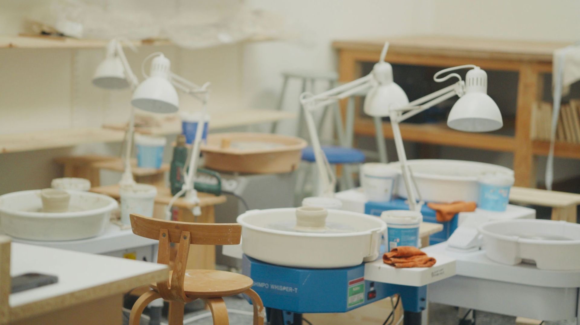 Værkstedet er udstyret med drejeskiver, arbejdsborde og et udvalg af glasurer. Vi sørger for glasurbrænding, og du betaler kun for den ler, du bruger. Atmosfæren er rolig og faglig, med plads til både fordybelse og erfaringsudveksling.